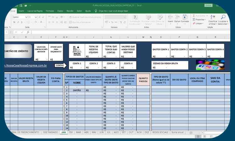 Organizar as finanças nunca foi tão simples! Este bônus é uma planilha prática e intuitiva, desenvolvida para ajudar você e sua família a acompanharem mês a mês toda a movimentação financeira do lar. Com um modelo completo que abrange os 12 meses do ano, é possível registrar receitas, despesas fixas e variáveis, metas de economia e muito mais.