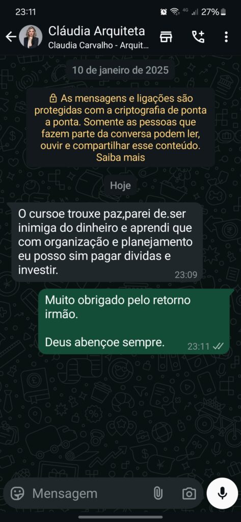 – Porque o dinheiro também é espiritual. E quando seguimos os princípios de Deus, colhemos frutos de paz, equilíbrio e propósito.